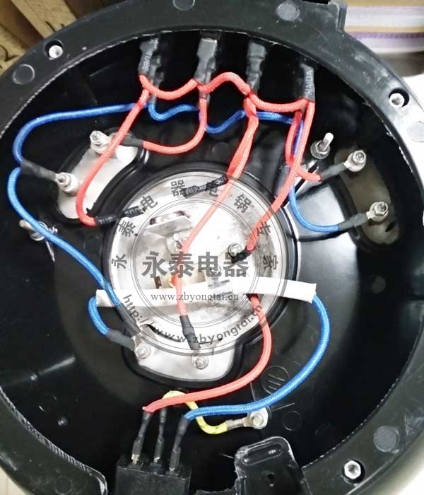 電熱鍋還壞不能只看外表,打開底座看一下內(nèi)部,內(nèi)有兩個(gè)溫控器,內(nèi)線很粗,插接處都有絕緣材料包裹,很整齊,質(zhì)量不錯(cuò)。