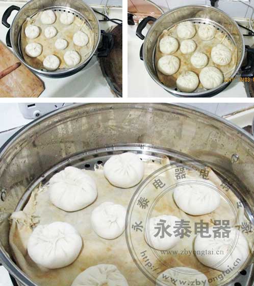 既然配有蒸籠,那我們就要蒸一下包子試試,鍋內(nèi)放水,包子放在蒸籠內(nèi)蓋上鍋蓋,打開三個(gè)加熱檔位,十幾分鐘左右很快就蒸好了,蒸好的包子又大又香,超級(jí)方便。